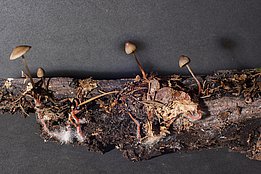 Mycelium: underground network of hyphae (filaments) which absorbs nutrients.