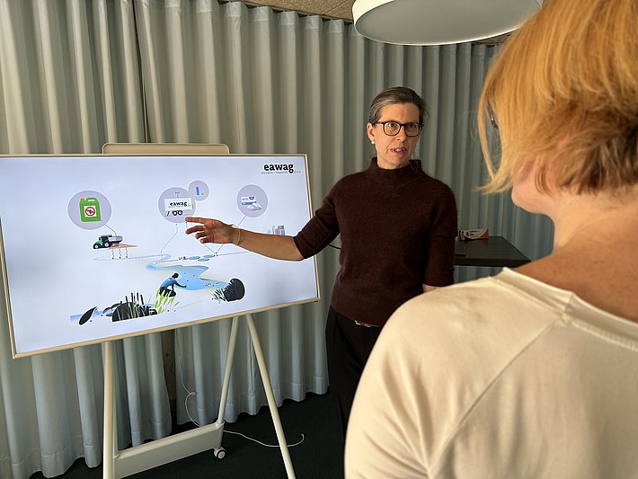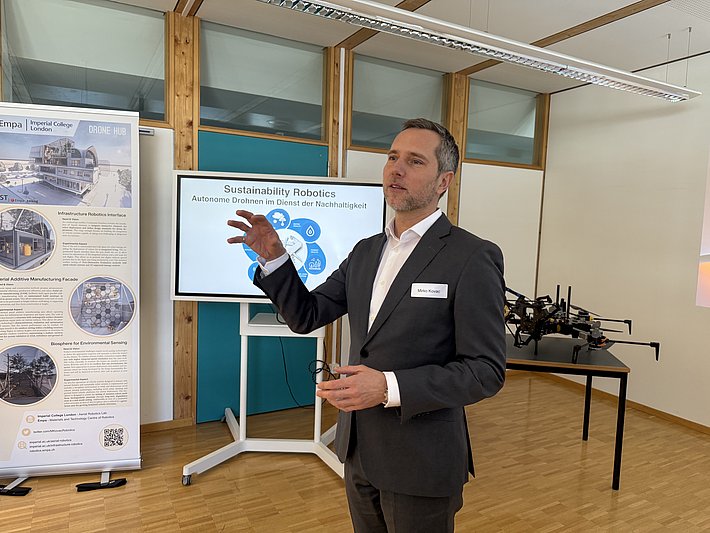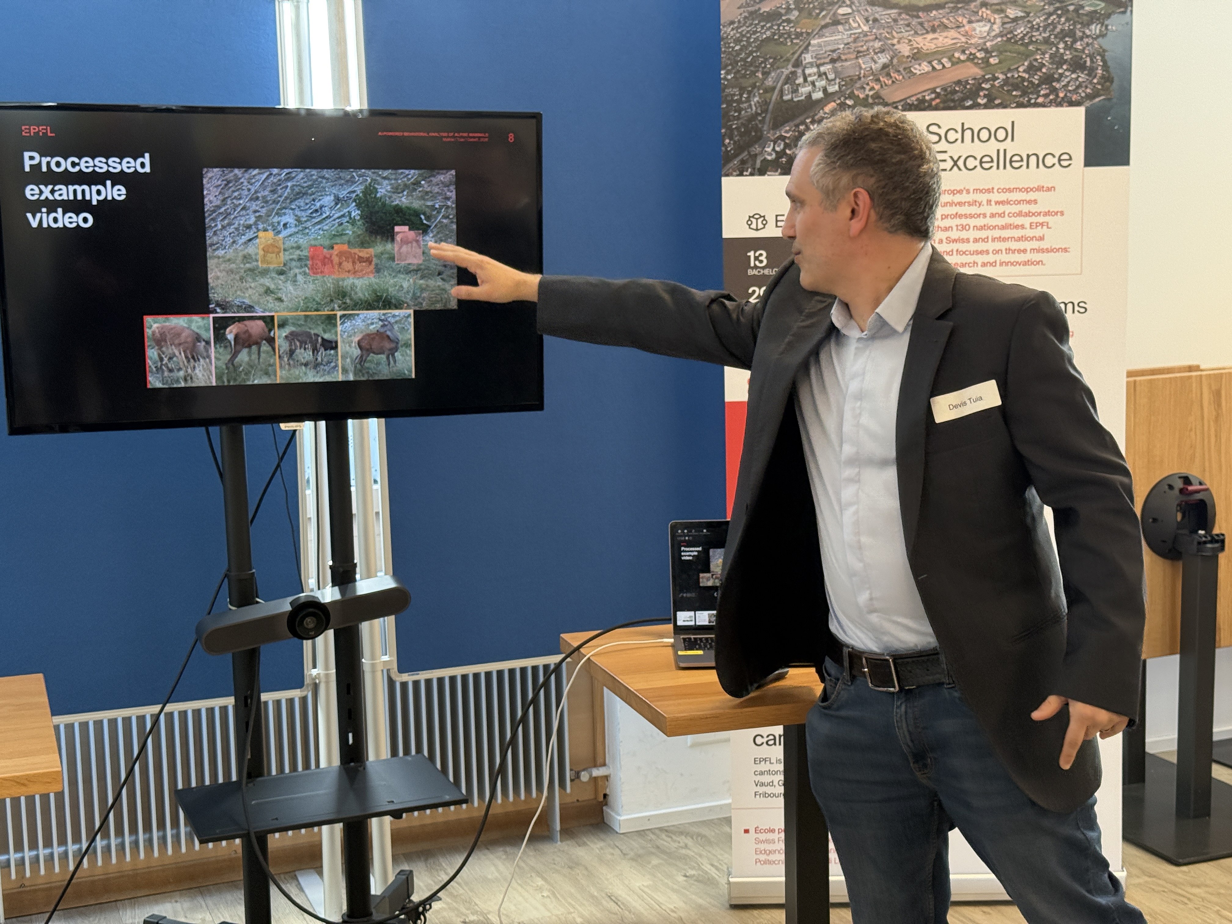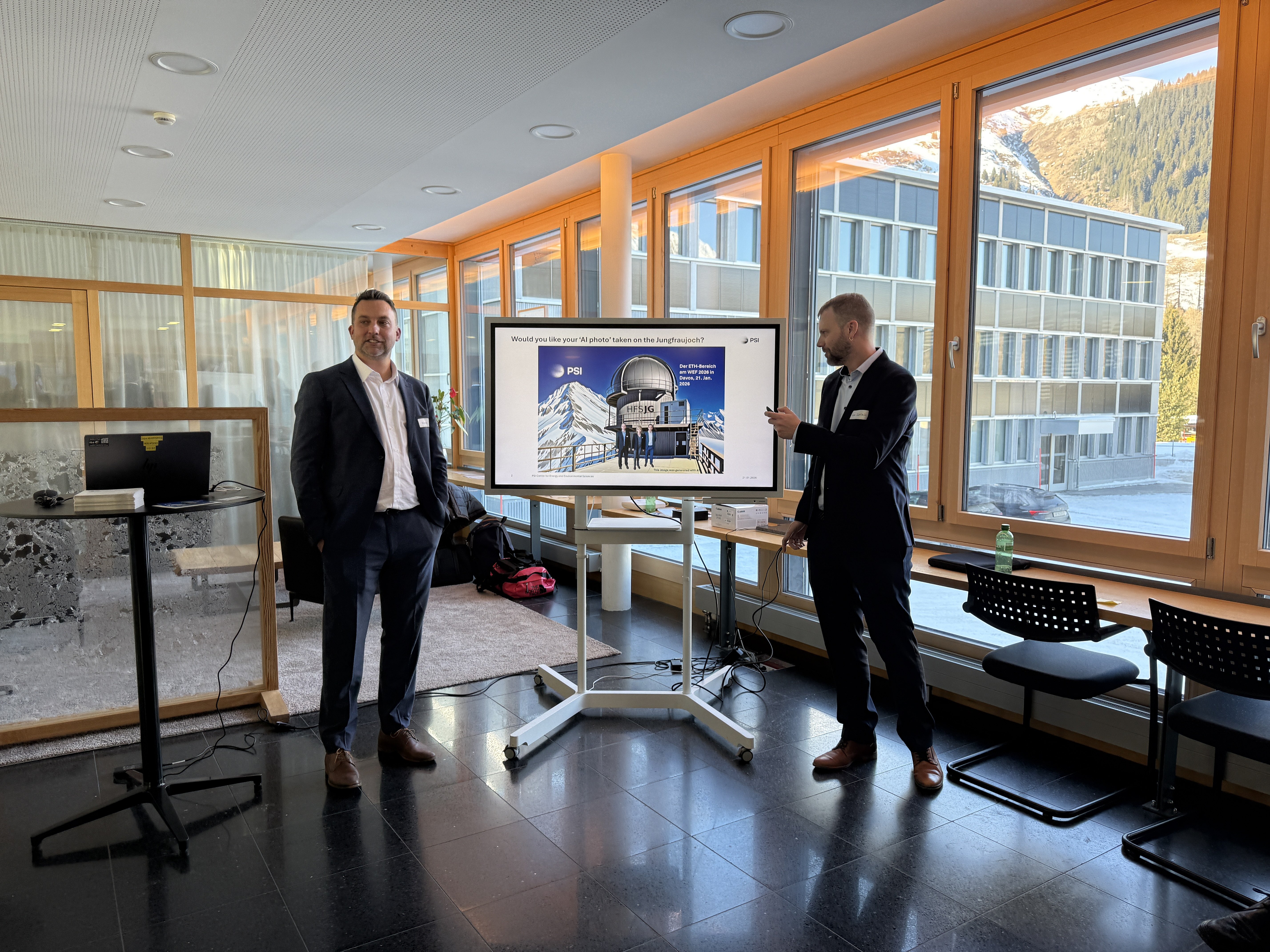 Artificial intelligence (AI) as a driver of sustainability – under this slogan, the ETH Domain invited a host of distinguished guests from the worlds of politics, business and science to the WSL Institute for Snow and Avalanche Research (SLF) in Davos. The visitors included government councillors from four cantons, including Carmelia Maissen, Marcus Caduff and Jon Domenic Parolini from Graubünden. "AI is more than just hype. We'll be showing you some pioneering applications in the environmental sector," said host, SLF Head Jürg Schweizer, in his welcome speech to the assembled guests. At six stations set up in the SLF premises, the visitors gained insights into the work of the six institutions making up the ETH Domain, namely the universities ETH Zurich and EPFL, and the research institutes PSI, WSL, Empa and Eawag.
