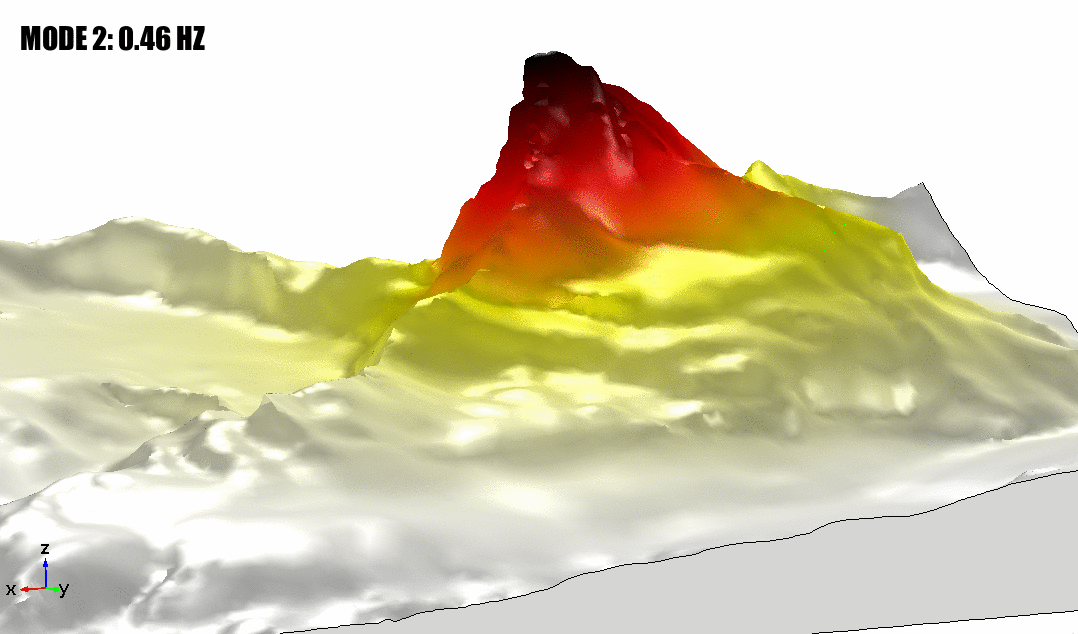 Like bridges and tall buildings, large mountains are constantly vibrating, excited by seismic energy form the Earth. An international team of researchers has now been able to measure the resonant swaying of the Matterhorn and to make its motion visible using computer simulations.