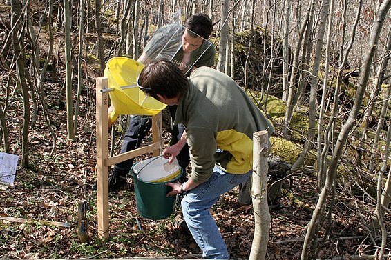 Previous to the winter storms Vivian (1990) and Lothar (1999), foresters would clear storm-damaged timber from the forests to, among other reasons, minimise the risk of bark beetle damage, harvest the fallen timber, or restore order. The research team wanted to find out whether leaving fresh deadwood at the windthrow site, thereby leaving it unsalvaged, would make a difference to the insects or not. So, it set up different insect traps (see box) on a total of 16 windthrow plots created by Vivian and Lothar as well as unaffected control plots in comparable forest sites. In some windthrow plots, the fallen deadwood had been salvaged, while others remained unsalvaged. In total, the researchers collected more than 500,000 individuals of over 1600 arthropod species, which include insects, spiders, and other arthropods.