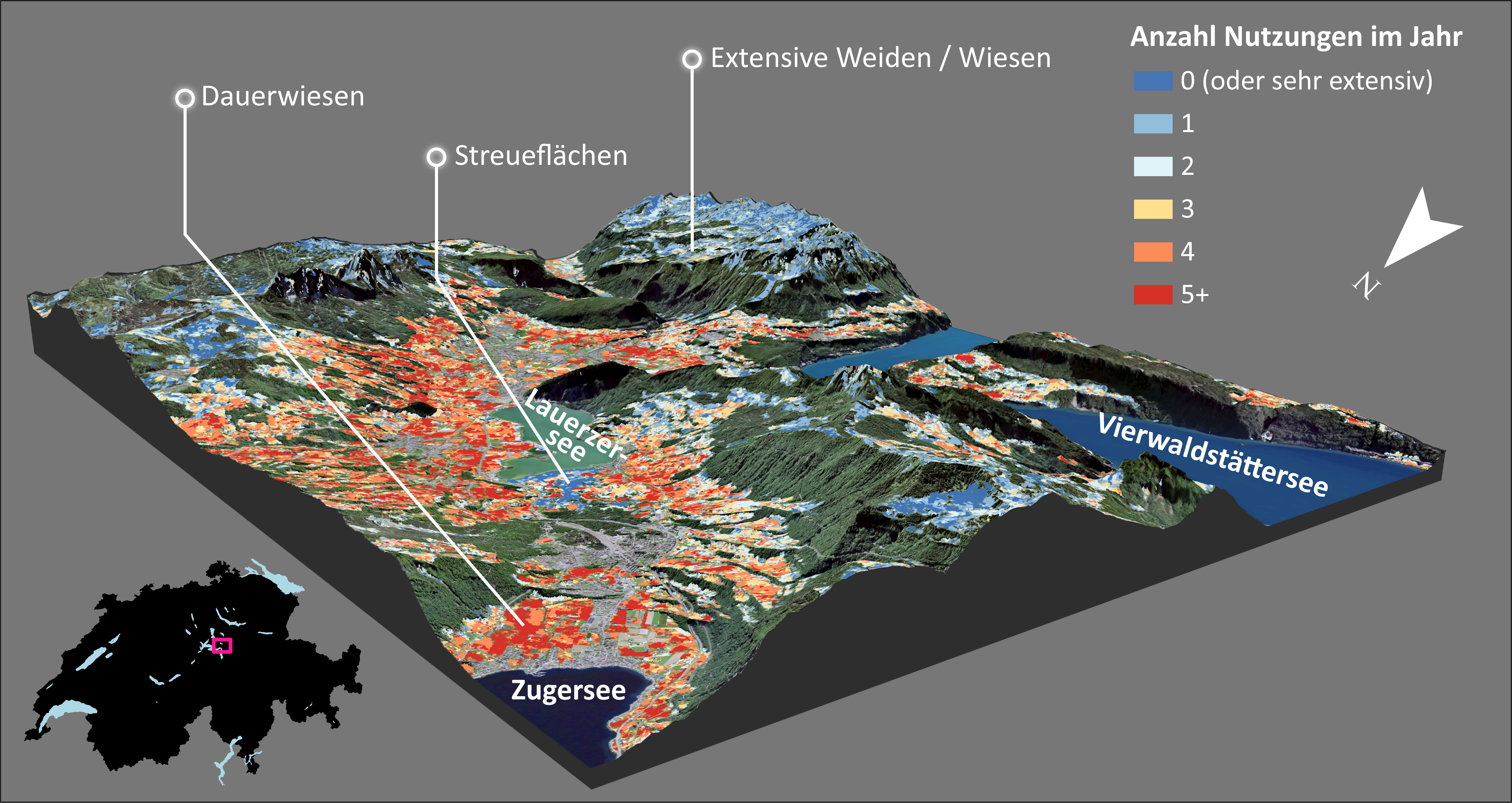 Land use intensity has a major impact on the biodiversity of our grasslands. However, it is time-consuming to measure it in detail over a large area. We have mapped the intensity of use across Switzerland using satellite imagery over several years, verified these maps and evaluated its potential for ecological applications.