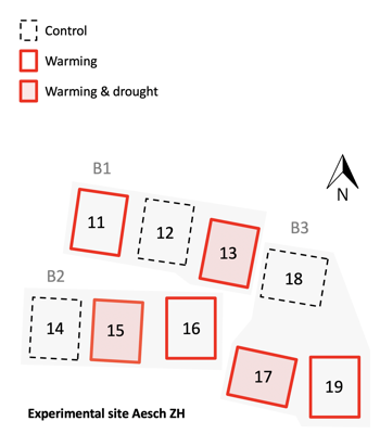 Warm & dry plot with elevated temperature and reduced precipitation (greenhouse, 50% of ambient precipitation added).