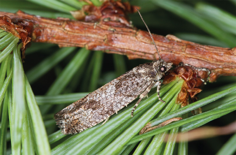 The grey larch budmoth (Zeiraphera griseana [Hübner]) is a small moth that became internationally famous for its periodic, large-scale infestations of larch forests in the Engadine and other inner Alpine valleys in Europe. While public attention remains limited to the years when regional outbreaks occur, this moth has become one of science’s bestknown examples of cyclic population fuctuations.
