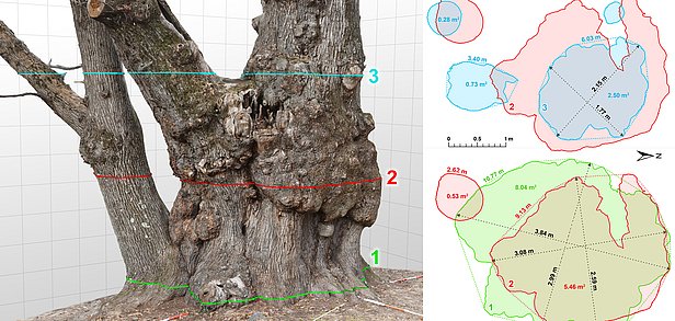 Das Modell ist eine Art digitale Kopie des Baumes zu, in der jedes morphologische und chromatische Detail der Oberfläche aufgezeichnet ist. Es kann für eine Vielzahl von Anwendungen eingesetzt werden, wie z.B. tragende Teile der Struktur zu betrachten und messen (Durchmesser, Flächen, Umfänge, Volumen und Querschnitte), für eine genauere Schätzung des Alters des Baumes, für die Erstellung eines Stabilitätsberichts und für die Verbesserung der strukturellen Sicherheit. Weitere Informationen gerne durch Anfragen an den Autor