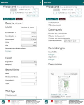 Swissfire is the forest fire database of Switzerland, which has been developed in a joint effort by WSL and FOEN (Federal Office for the Environment). All information on forest fires and fires in open areas is being collected in one central data base, which is an optimal tool for forest fire management.