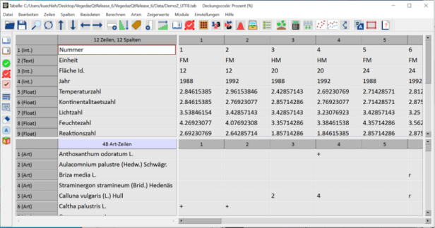 The table editor is connected to a database system, which manages species lists, indicator values and other information. The database helps for the preparation and synonymization of vegetation data.