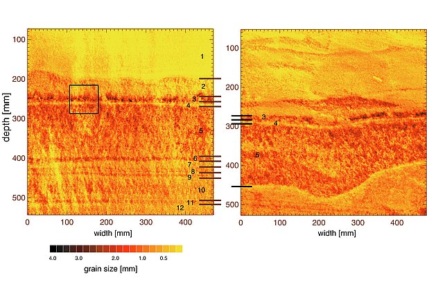 Dans un premier temps nous photographions la surface de la neige sous des angles divers. Les prises de vue seront plus tard traitées par photogrammétrie pour nous donner la valeur de la rugosité de surface. Puis nous effectuons les mesures avec le SnowMicroPen, un instrument qui détermine la résistance à la pénétration. Maintenant il ne s’agit plus que de creuser. Si seulement c’était si simple ! La pelle est à peine enfoncée à moitié dans la neige que le sol, ou plutôt la glace, oppose une résistance farouche. L’épaisseur du manteau est pour l’instant encore faible. Nous devons nous contenter de profils d’une hauteur de 8 à 30 cm.