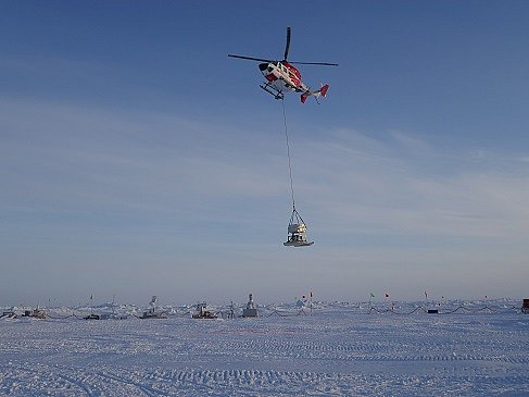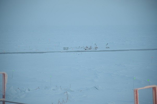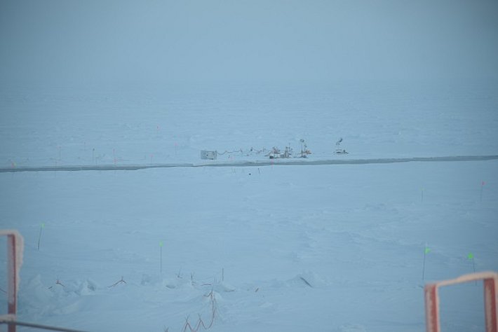 Sur le nouveau site, nous avons eu la chance de pouvoir mesurer une glace de mer de deux ans et de mettre au point d'autres expériences pour mieux comprendre les caractéristiques micro-ondes de la glace de mer et de sa couverture neigeuse, ainsi que la variabilité spatiale de la glace de mer. Il a fallu pour cela déplacer nos équipements ELBARA et HUTRAD, ce qui nous a permis de constater que pour se rendre compte du poids d’instrument, il faut essayer de le tirer à la main sur un traîneau !