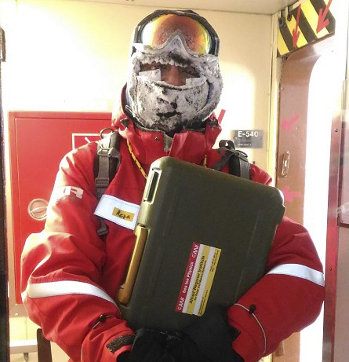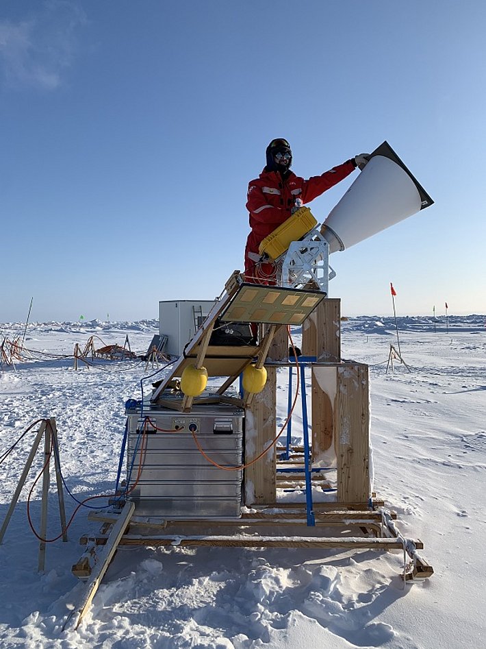 L’un des principaux axes de la recherche MOSAiC est la télédétection par micro-ondes de la glace de mer et de sa couverture neigeuse afin d’améliorer les modèles utilisés pour estimer leurs caractéristiques à partir de mesures satellitaires. Pour ce faire, plusieurs instruments actifs (tels que des radars fonctionnant dans les bandes L, C, X et K) et passifs (tels que ELBARA, HUTRAD, SSMI et GNSS-R) recueillent les signatures micro-ondes de la glace de mer dans différentes conditions. Ces mesures de télédétection sont accompagnées d’autres mesures in situ de la neige et de la glace, telles que la densité, l’épaisseur, la température et la salinité. Ma contribution au projet consistait à faire fonctionner un radiomètre ELBARA que nous avions envoyé au préalable sur le navire.
