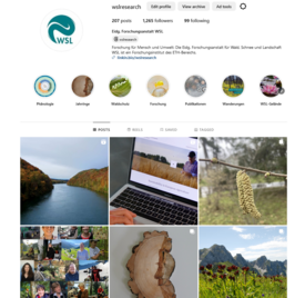 Le WSL publie sur les médias sociaux des informations et des contributions concernant notamment les résultats et les priorités de la recherche, les manifestations, les projets, les produits et les actualités du WSL. Nos canaux sont les suivants : LinkedIn Instagram YouTube Bluesky