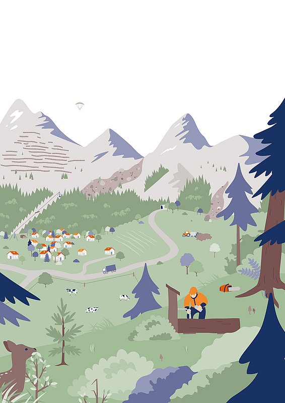 La chaîne de valeur de la forêt et du bois doit s'adapter aux nouvelles conditions, de la production de matières premières à la transformation et à l’utilisation des produits. La filière forêt-bois peut devenir un acteur clé de l'économie circulaire, contribuant ainsi aux objectifs environnementaux et climatiques de la Confédération.