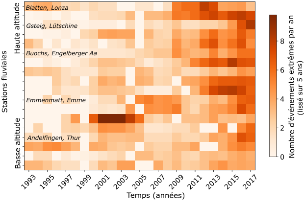 Pour son étude, elle a examiné des séries chronologiques de 177 cours d'eau et de leurs bassins versants dans les Alpes, les Pyrénées, le Massif central français et les montagnes de Scandinavie, dont 35 en Suisse comme l'Emme, le Rhône et le Dischmabach près de Davos. «La température moyenne de l'eau a augmenté de 0,38 degré Celsius par décennie au cours des trente dernières années, ce qui entraîne davantage de températures extrêmes de l'eau en haute altitude au printemps et en été», a découvert Van Hamel. Cela représente tout de même environ 1,1 degré de plus par rapport à 1994.