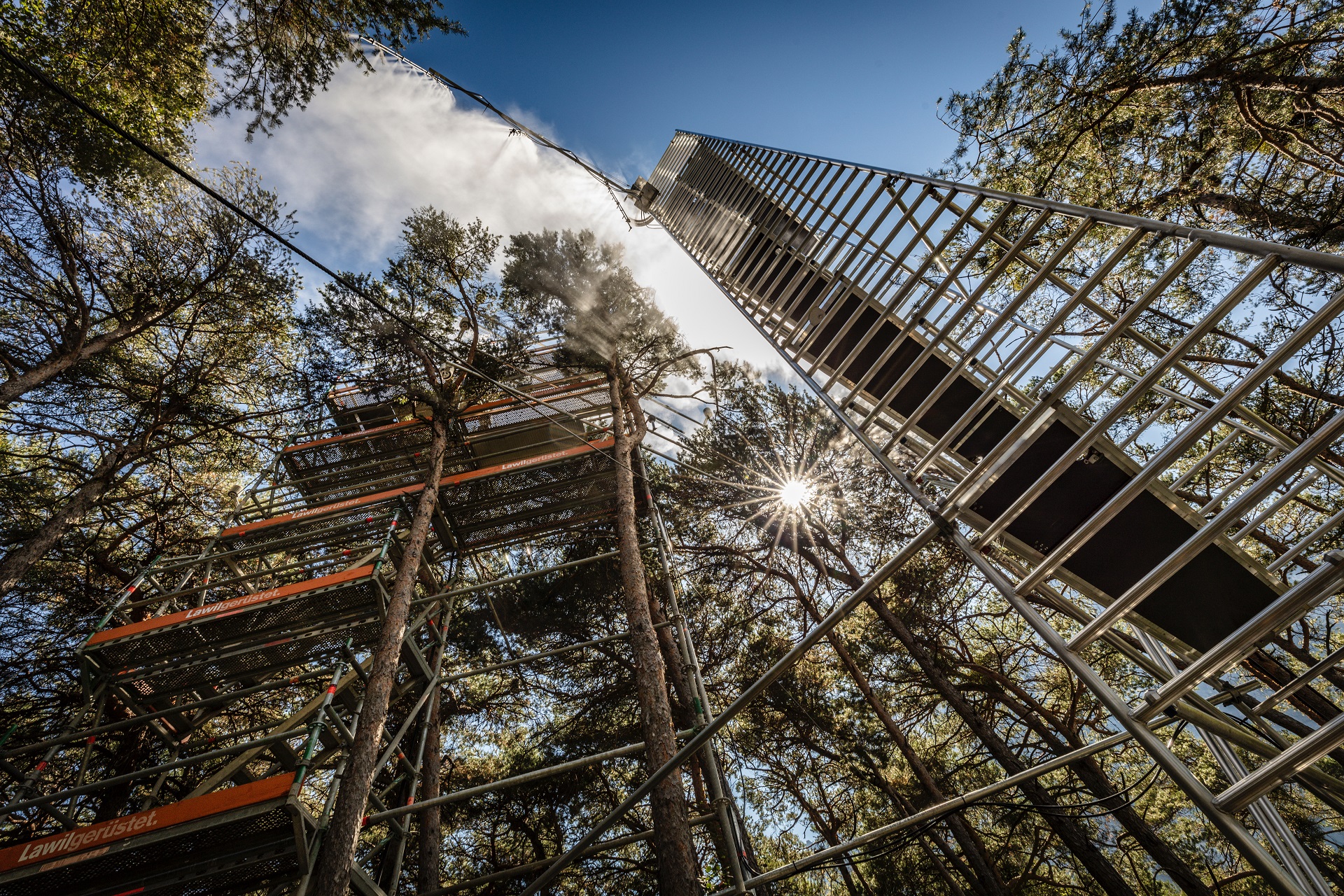 Avec l'avancée du changement climatique et la multiplication des étés caniculaires, une nouvelle menace est apparue: l'augmentation des températures de l'air assèche non seulement le sol, mais aussi l'air. Cette sécheresse atmosphérique met les arbres à rude épreuve et «aspire» également plus d'eau. Les arbres perdent donc plus d'eau par évaporation, même si le sol est relativement humide. Les scientifiques du WSL étudient ce phénomène dans le cadre d'une nouvelle expérience grandeur nature, unique au monde. Sur le même site du Bois de Finges, ils ont installé des buses de vapeur d'eau en plus des gicleurs afin de manipuler de manière combinée la sécheresse de l'air et celle du sol, et ainsi de mieux comprendre comment ces deux facteurs agissent sur les arbres et la forêt.