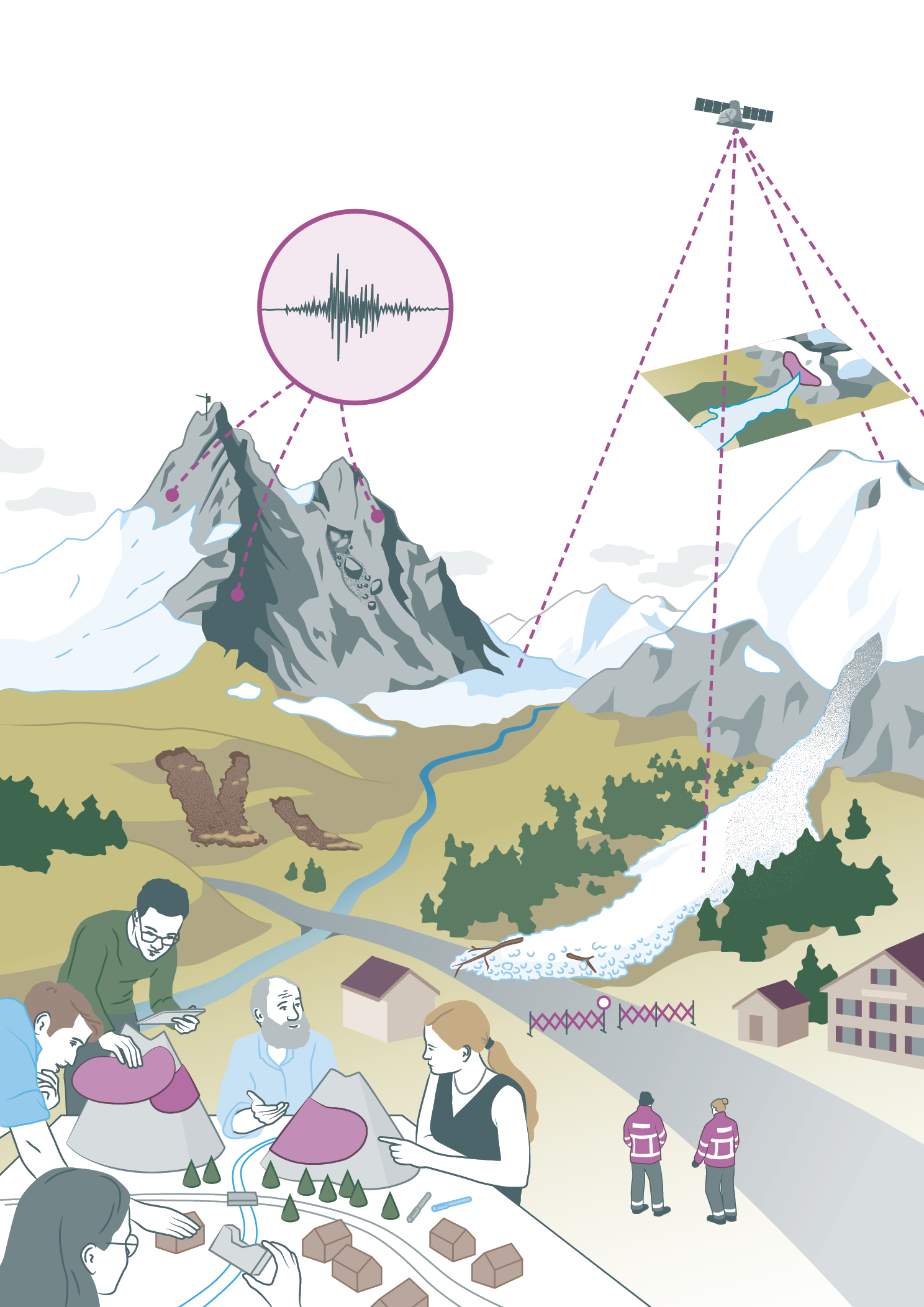 Selon Alexander Bast, il existe encore un grand potentiel d’amélioration dans le domaine des systèmes d’alerte précoce : « Nous devrions nous concentrer sur le développement de systèmes moins coûteux qui fournissent des données avec une résolution temporelle et spatiale élevée. » À cet égard, les habitantes et habitants de Suisse sont également appelés à s’impliquer. En tant que scientifiques citoyennes et citoyens, ils peuvent fournir des informations importantes sur les avalanches, les éboulements et bien d’autres phénomènes, comblant ainsi les lacunes existantes dans les données. Les chercheuses et chercheurs du programme CCAMM ont dressé une liste de sept points sur lesquels il convient de travailler dans les années à venir. Ils en sont convaincus : « Nous ne serons pas à court de travail. »