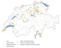 L’Institut fédéral de recherches WSL collecte systématiquement depuis 1972 les informations sur les dommages liés aux intempéries. La banque de données créée avec le soutien substantiel de l’Office fédéral de l’environnement OFEV contient des informations sur les dommages provoqués par les crues, les coulées de boue, les glissements de terrain ainsi que les éboulements et chutes de pierres. Les dommages provoqués par les avalanches, le poids de la neige, les séismes, la foudre, la grêle et les tempêtes ne sont pas pris en compte dans les évaluations. L’évaluation des dommages aux biens, aux infrastructures, aux forêts et à l’agriculture se base principalement sur ce que rapportent les médias. Les données sont à disposition des spécialistes, sur demande, et constituent une base essentielle pour l’évaluation des dangers. Le relevé des dommages par le WSL sert à établir les rapports sur l’environnement de l’OFEV.
