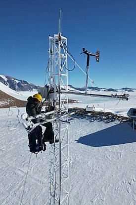 Il est toutefois bon de reconnaître qu'une telle tâche ne peut pas être accomplie seule. De nombreuses personnes ont été impliquées de différentes manières et je tiens à les remercier d'avoir rendu ce projet possible. Tout d'abord, mon chef Michi, qui a eu l'idée d'ériger cette tour, et Hendrik ; tous deux ont conçu la station avec moi. Je tiens également à remercier mes collègues du groupe Processus nivologiques et CRYOS, en particulier Armin, qui m'a toujours soutenu avant et pendant la construction. Rainette, Anja et Romeo, qui ont construit avec moi la station test à Davos. Les collègues de l'équipe électronique : Michi, Chasper et surtout Carlos, qui ont câblé la station à Davos, et les collègues de l'atelier Benni, Urs et Silvio, qui ont fabriqué tout le matériel de montage pour moi. Marion, qui a organisé l'envoi du matériel, et Lara et Tatjana, qui m'ont aidé à l'emballer. Tous les collègues et techniciens de l'équipe de la station Princesse-Elizabeth, en particulier Henri, Benoit, Simond, François, Martin et Manu, qui m'ont aidé à monter la station et les instruments sur le mât. Les équipes informatiques de Davos et de Princess Elizabeth, qui travaillent maintenant au rapatriement des données. L'équipe de communication de Recerca en Acció avec Marc Portella et du SLF avec Cornelia, Jochen, Martin et Roman, qui ont soutenu toutes mes activités pendant la campagne. Et aussi l'équipe de la cafétéria de Davos, Marco, Bernd, Evelyne et Suseela, qui m'ont servi du café et des repas pendant que je préparais la station, ce qui m'a permis de me concentrer sur le travail. Et il y a probablement d'autres personnes qui ont contribué à cela, mais qui ne me viennent pas à l'esprit pour l'instant : Merci à vous aussi !