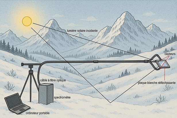 - Mesures en haute montagne : une chercheuse du SLF analyse le spectre lumineux réfléchi à l’aide de capteurs.