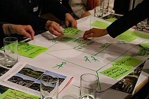 Methodisch wird in KLANG mit partizipativer Szenarienentwicklung gearbeitet. Für die KLANG Fallregionen, Grünes Band Bern, Lenzburg Seetal und Biosfera Val Müstair, werden unter partizipativem Einbezug verschiedener lokaler Stakeholder Szenarien möglicher zukünftiger Landschaftsentwicklungen unter Einfluss des Klimawandels entwickelt. Dabei werden wissenschaftliche Ergebnisse und lokales Wissen zu landschaftsrelevanten Praktiken und Besonderheiten berücksichtigt. Gezielt eingesetzte Methoden der partizipativen Szenarienentwicklung erleichtern den Dialog mit lokalen Stakeholdern über eine Vielfalt verschiedener möglicher Zukünfte. So wird transdisziplinär neues Wissen geschaffen. Die Szenarien berücksichtigen die sich ändernden sozialen, politischen und wirtschaftlichen Rahmenbedingungen sowie weitere treibende Kräfte des Landschaftswandels und die entsprechenden Unsicherheiten. Die Szenarien werden in Bildern und Geschichten dargestellt.