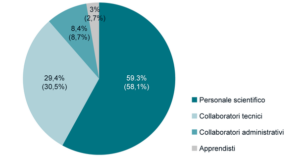 Alla fine del 2024 il WSL contava 660 rapporti d’impiego. Il numero di equivalenti a tempo pieno (FTE) era di 574,6 FTE. La quota dei collaboratori scientifici (FTE) sull’organico è del 59,3 % circa. 79 dottorandi e 65 post-dottorandi sono inclusi nel calcolo del personale scientifico. Tra il personale rientrano anche 17 persone in formazione.
