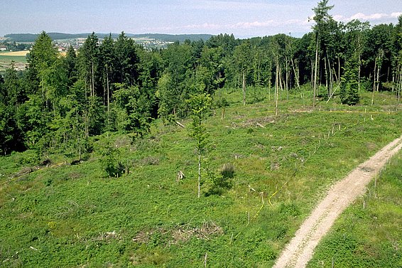 L'abete rosso non è originario dell'Altopiano centrale e la silvicoltura lo ha piantato in modo estensivo per la produzione di legname. Non solo è suscettibile alle tempeste invernali e ai coleotteri della corteccia, ma soffre anche il caldo e la siccità. Oggi sta diventando molto più raro, come dimostra l'Inventario Forestale Nazionale (IFN) realizzato dal WSL. Al contrario, molte specie arboree decidue considerate resistenti al clima, come le querce, il ciliegio, l'acero di monte e l'acero platanoide, sono ricresciute naturalmente nelle zone colpite dalle tempeste.