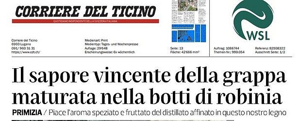 - Corriere del Ticino (per abbonati): Il sapore vincente della grappa ticinese maturata nella botti di robinia. Piace l’aroma speziato e fruttato del distillato affinato in questo legno molto diffuso nel Mendrisiotto.