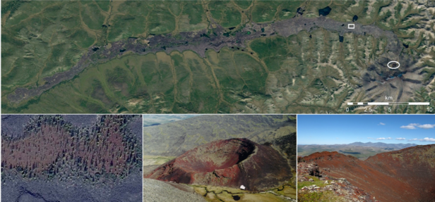Despite its remarkable 56 km-long lava flow, Anyui volcano was only discovered in aerial photographs in 1952. Indeed, due to challenging logistics, much of Chukotka remains terra incognita to science11. Superficially, Anyui’s last eruption appears very recent, though estimates of its age are contradictory12,13. Moreover, no ash from the volcano has been found in the sediments of Lake El’gygytgyn14 nor in Greenland ice cores15.
