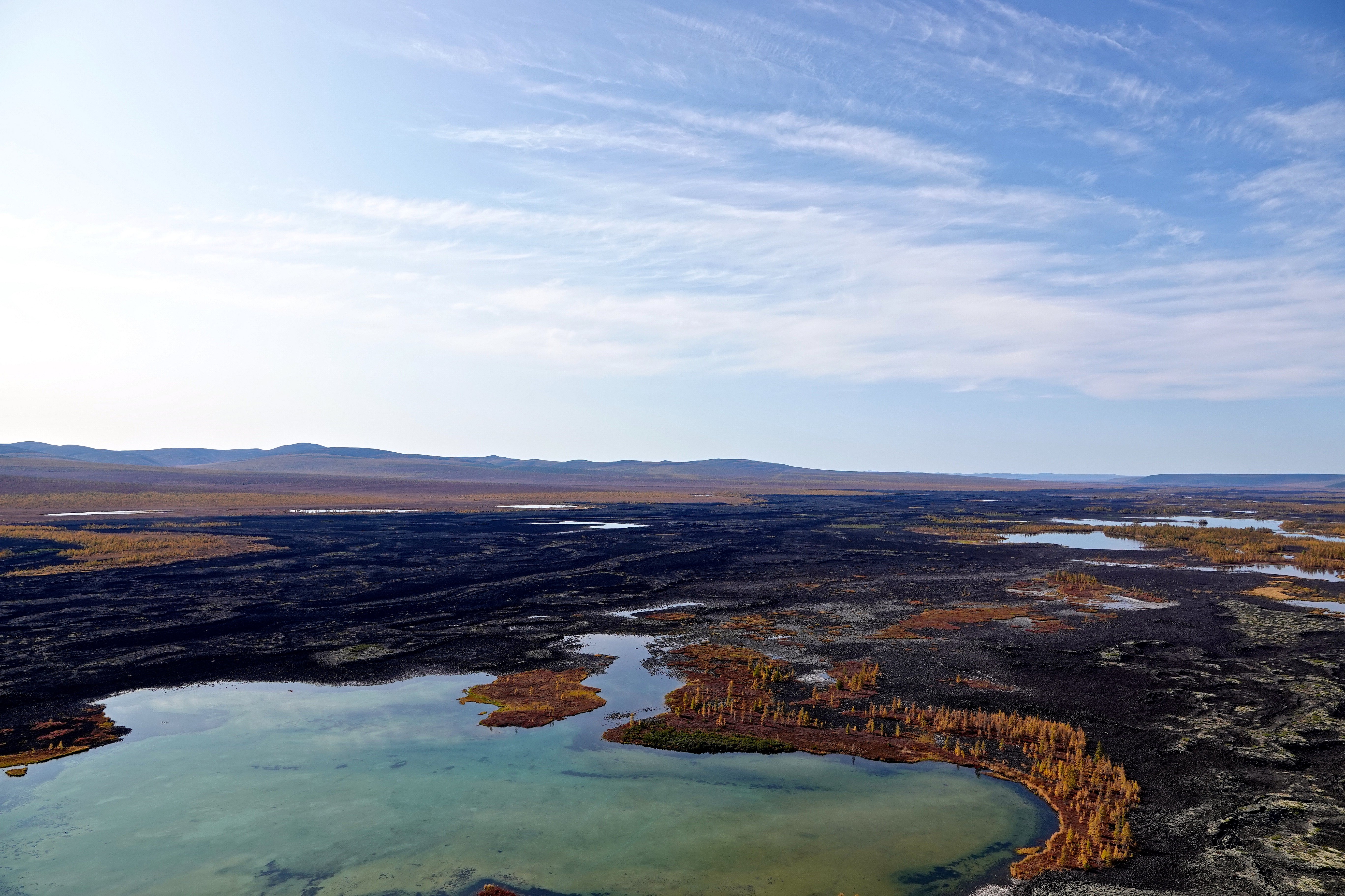 Our first field camp was located close to the volcano vent (67°11’46.14’’N, 165°53’04.69’’E and 570 m asl). We used further helicopter support to transfer to successive field camps along the 56 km-long lava flow field. We ranged up to several kilometres from each camp on foot to conduct the dendrochronological and geological sampling. We collected many core and disc samples from recent and relict conifers, and plenty of rock and sediment samples.