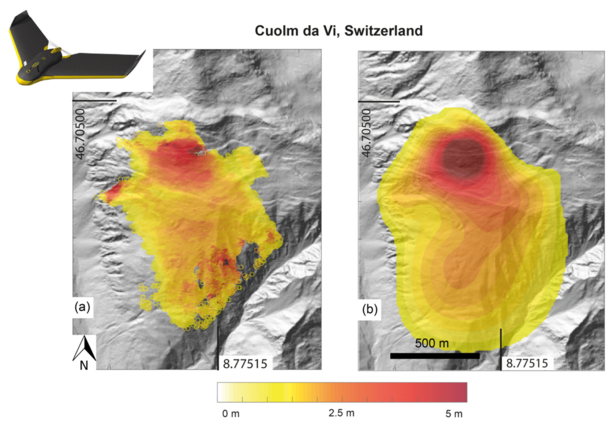 Die Alpine Fernerkundungsgruppe des SLFs erforscht Massenbewegungen mit verschiedenen Fernerkundungsdaten, -Plattformen (bodengestützt, luftgestützt, weltraumgestützt) und Sensoren (optisch, Radar, Multispektral). Das Hauptziel ist es, geomorphologische Prozesse besser zu verstehen und deren potenziellen Gefahren abzuschätzen. Zudem, ist die enge Zusammenarbeit mit lokalen Behörden und deren Rückmeldungen wichtig, um die Forschungsprodukte in praktische Verwendungen umwandeln zu können.