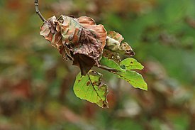 Les analyses montrent que le changement de couleur prématuré du feuillage pendant la sécheresse de l’été 2018 était un symptôme d’affaiblissement pour une majorité des hêtres étudiés. Le déficit hydrique extrême a déclenché, surtout dans les sites au climat sec et aux sols peu profonds, un processus de dégradation qui a parfois conduit à la mort de l’arbre. La mortalité accrue du houppier était souvent accompagnée d’une infestation d’insectes et de pathogènes.