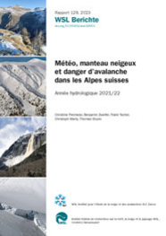Pielmeier C., Zweifel B., Techel F., Marty C., Stucki T. (2023) Météo, manteau neigeux et danger d’avalanche dans les Alpes suisses. L’année hydrologique 2021/22. WSL Berichte 129. Davos; Birmensdorf: WSL Institut pour l’étude de la neige et des avalanches SLF; Institut fédéral de recherches sur la forêt, la neige et le paysage WSL. 39 S. doi.org/10.55419/wsl:32653