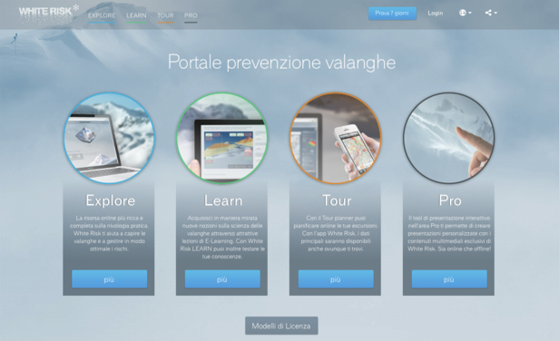 White Risk è la soluzione ideale per l’autoapprendimento, l’insegnamento scolastico o i corsi di nivologia, nonché come opera di consultazione su tutti i temi che ruotano intorno alle valanghe e per pianificare in modo completo un’escursione con tutte le informazioni necessarie. Per gli insegnanti o i responsabili dei corsi di nivologia esiste inoltre la possibilità di acquistare a prezzi convenienti licenze per i loro studenti per periodi di tempo a scelta.