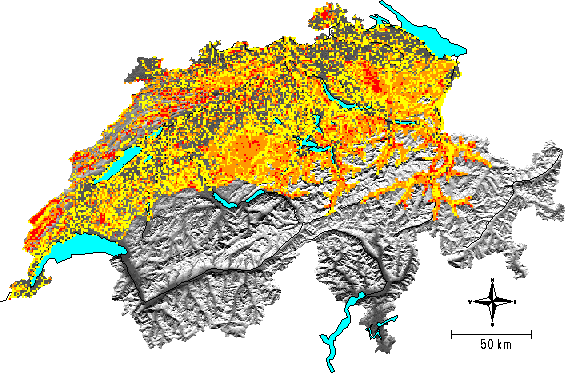 relative area of suitable habitat per km