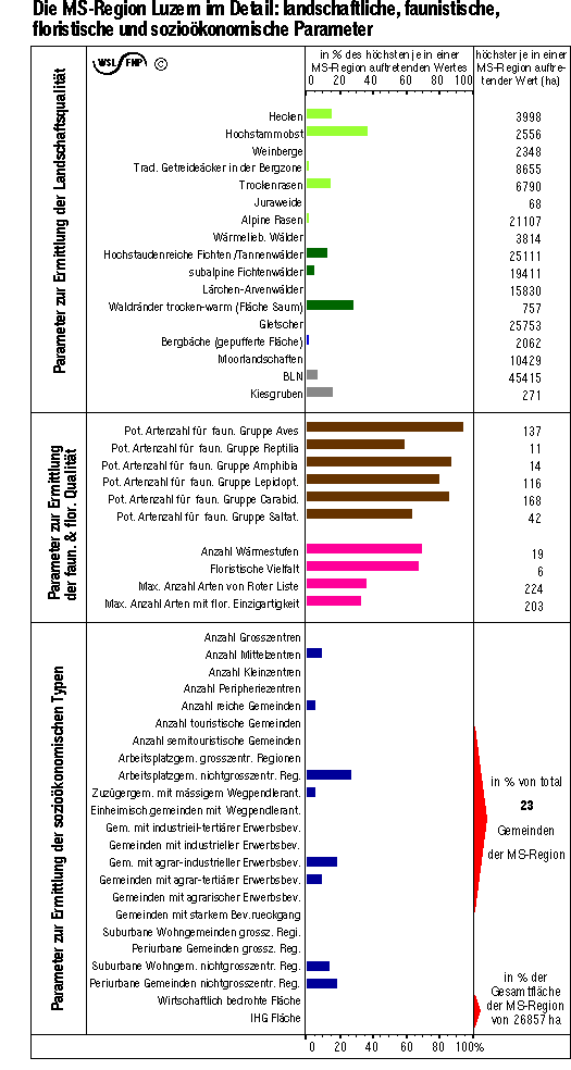 Knapp (-) oder gut (+) erreichte Qualitätsstufen: Landschaftsqualität +; faunistische Qualität +.