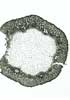Diffuse-porous. Pores widely spaced, solitary and in radial multiples of two to 4 (rarely to 6). A few rows of radially flattened fibres mark the growth ring boundaries. Walls of the fibres vary in thickness and thus often form a patchy pattern. Parenchyma sparse, apotracheal, diffuse, occasionally paratracheal and rarely marginal. |