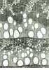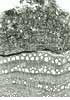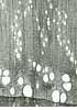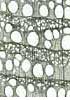 Ring-porous. In Iarge growth rings, the pores of the Iatewood form radialy oriented flame-like groups. In the heartwood, the earlywood vessels are obstructed by thin-walled tyloses. In general uniform distribution of thin- and thick-walled libriform fibres and fibre-tracheids. Apotracheal parenchyma both diffuse and in short, indistinct uniseriate tangential bands. Occasionally paratracheal parenchyma. |
