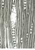 Resin canals with thin-walled epithelial cells. Rays with large fenestriform pits, ray tracheids with thin, smooth walls. |