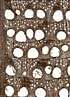 Ring-porous. Earlywood ring with one to many rows of pores, more or less compact. Latewood pores solitary or in radially orientated to dendritic groups, especially in wide growth rings. Pore density in latewood sparse to dense. In the heartwood tyloses in the vessels of earlywood. Libriform fibres thick-walled, in irregular patches. Apotracheal parenchyma either diffuse or in uniseriate diagonal and tangential bands, frequency variable. Broad rays visible to the naked eye. |
