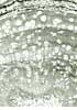 Ring-porous. Gradual pore size transition from large earlywood pores to small pores of latewood. Earlywood pore ring uni- to triseriate, earlywood pores generally solitary, pore clusters in latewood. Conspicuous tyloses with thin walls in heartwood pores. Thick-walled ground tissue. Parenchyma paratracheal, abundant in earlywood, less frequent in latewood in proximity of vessels and vascular tracheids. Parenchyma in never continuous tangential to oblique bands. |