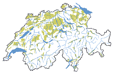 wurden und diese Gebiete anschliessend mit einem Puffer von 5km umgeben