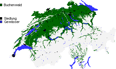 Potentiell natürliche Verbreitung der Buchenwälder unter heutigem Klima |