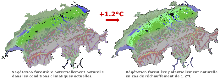 Dans les régions de basses altitudes, les hêtraies à charmes, friandes de chaleur, supplanteront les hêtraies.