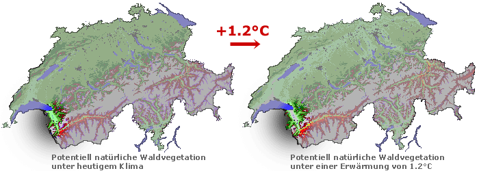 können vermutlich dem zusätzlichen Trockenstress nicht standhalten und werden am Talboden durch andere, in der Schweiz