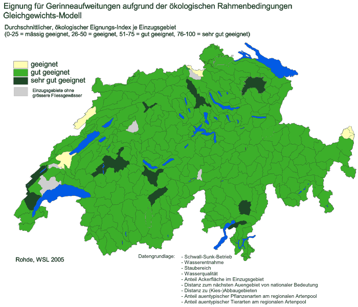 Durchschnittlicher, ökologischer Eignungs-Index je Einzugsgebiet (Gleichgewichts-Modell) |