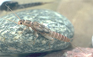 In der Rhone nimmt der Schwalleinfluss zwischen Brig und der Mündung in den Lac Léman stufenweise zu. Mehr oder weniger parallel dazu verändern sich auch verschiedene, auf die Lebensgemeinschaft in und am Fluss bezogene (biotische) Indikatoren für die ökologische Integrität bzw. Qualität der Rhone. Beispiele dafür sind etwa gewisse Indikatoren für die Häufigkeit (Abundanz), die Menge (Biomasse), die Vielfalt (Taxazahl) und die Zusammensetzung (Anteile einzelner Gruppen) des Makrozoobenthos (Abbildung 1). Die Veränderungen der biotischen Indikatoren und des Schwalleinflusses verlaufen aber in der Regel nicht so schön parallel, dass der Schwallbetrieb als alleinige oder als wichtigste Ursache festzumachen wäre. Es gibt vielmehr eine ganze Reihe von weiteren Einflussfaktoren, welche die Auswirkungen des Schwallbetriebes modifizieren oder gar überdecken können. Im Zuge von zwei grossen Rhone-Korrektionen zwischen 1860 und 1960 hat sich das ehemals grosse Angebot an unterschiedlichen Lebensräumen (Habitatvielfalt) im Hauptbett und den Seitengewässern stark vermindert. Mit dem forcierten Bau von schwallerzeugenden Speicherkraftwerken zwischen 1950 und 1970 ist zusätzlich auch noch stark in die Wasserführung und die eng damit verbundenen Strömungsverhältnisse eingegriffen worden. |