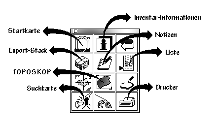 eines Knopfes. Mit Knopfklicken kann man das Objekt im TOPOSKOP-Fenster