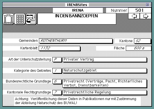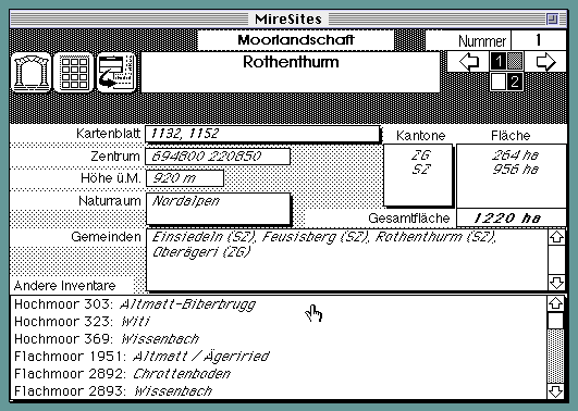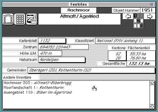 Easy Access TOPOSKOP has been designed to provide simple and efficient access to the data of the national biotope inventories (see below). It consists of two programs (only available for Macintosh): the TOPOSKOP graphic viewer, which creates a map overlaying the object boundaries of different inventories, and the DATASKOP database, a HyperCard application containing the data belonging to each object.